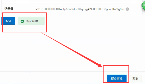 验证信息,验证成功以后,提交审核